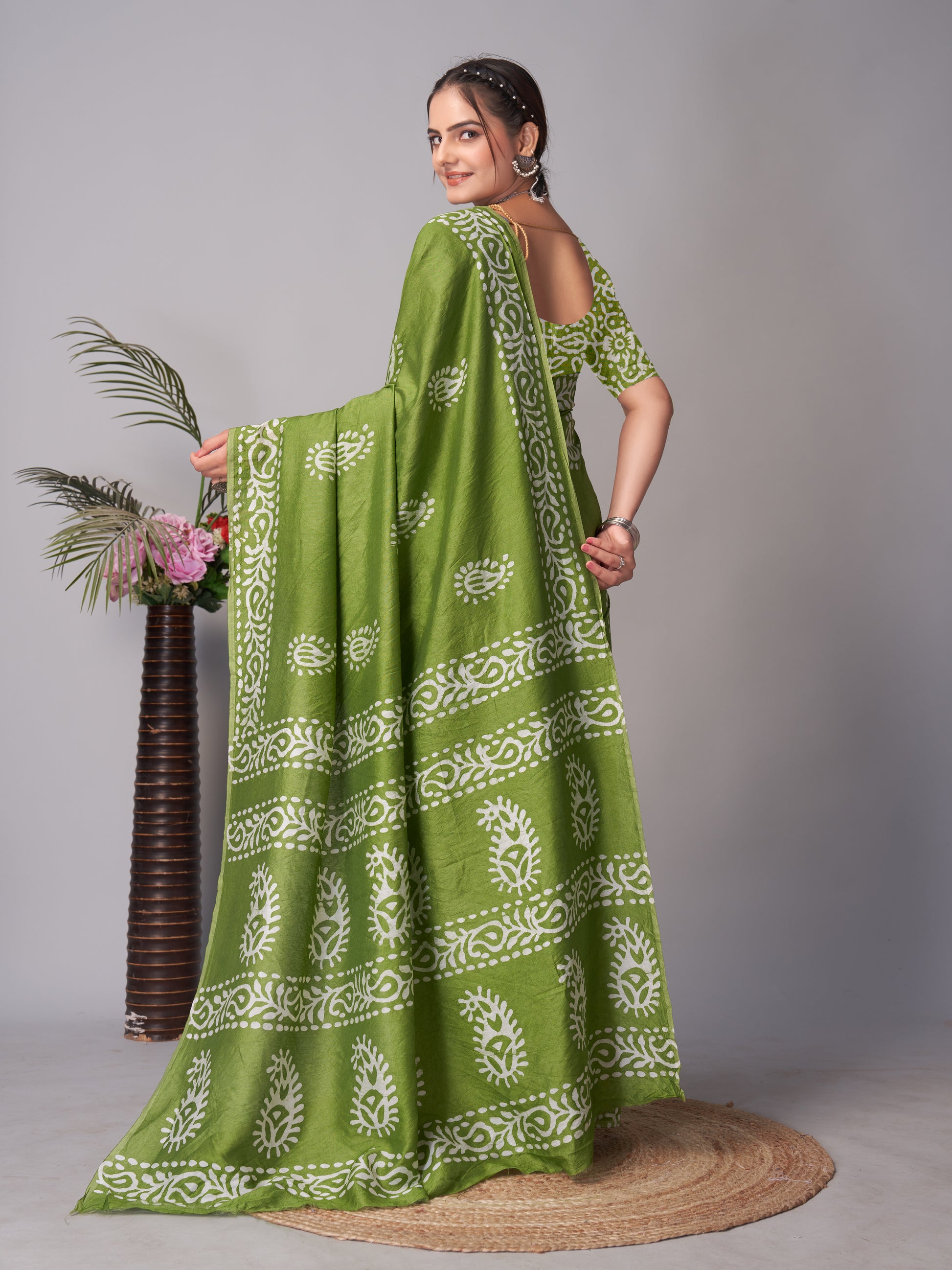 Saree – Soft Cotton Batik Print Mango Green - B4